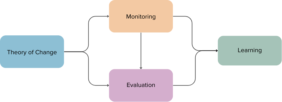 The insights gained from both monitoring and evaluation form the Learning component of MEL, and those learnings can be used to improve your program and update your Theory of Change. This process forms the MEL cycle of continuous improvement.